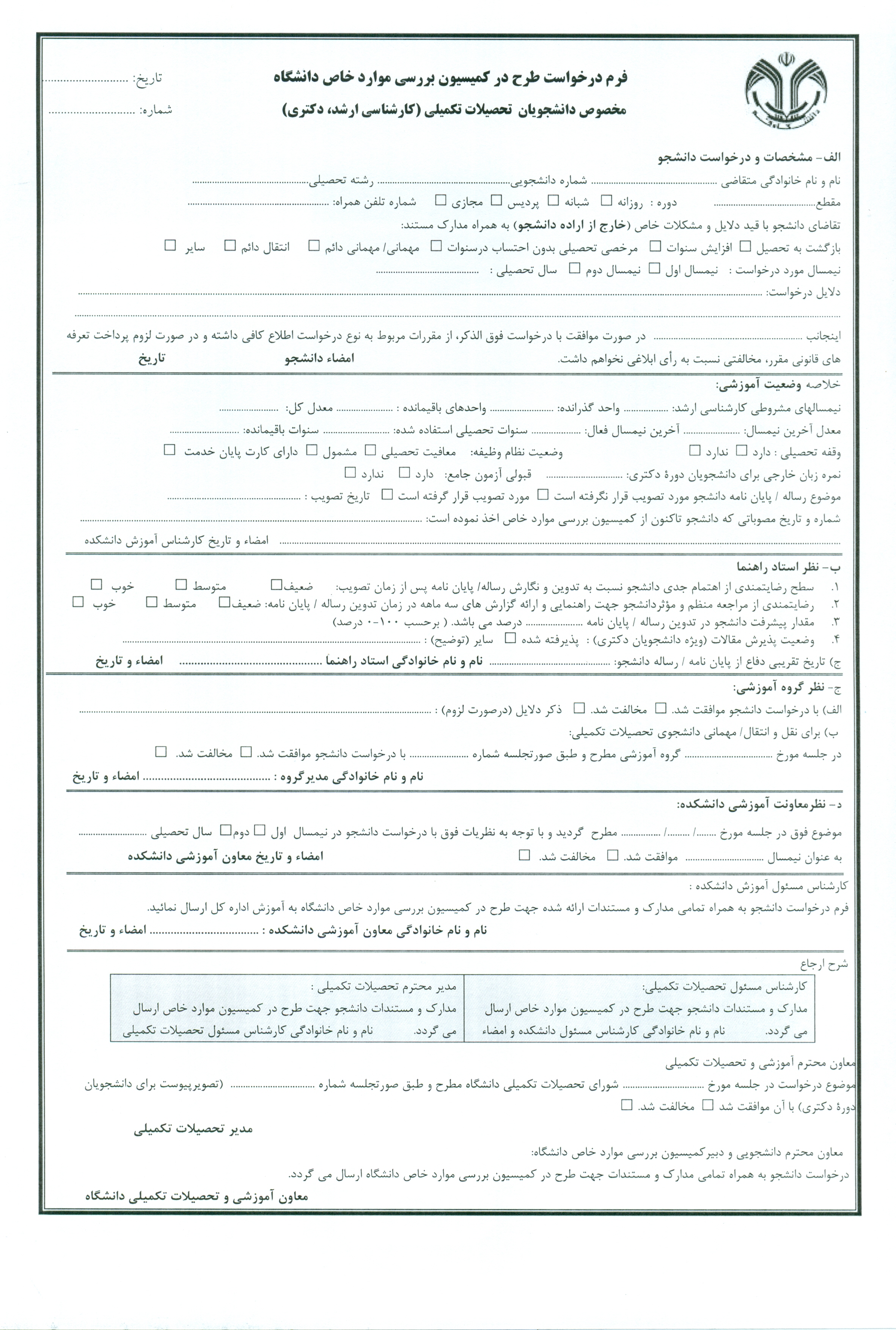 فرم درخواست طرح در کمسیون موارد خاص