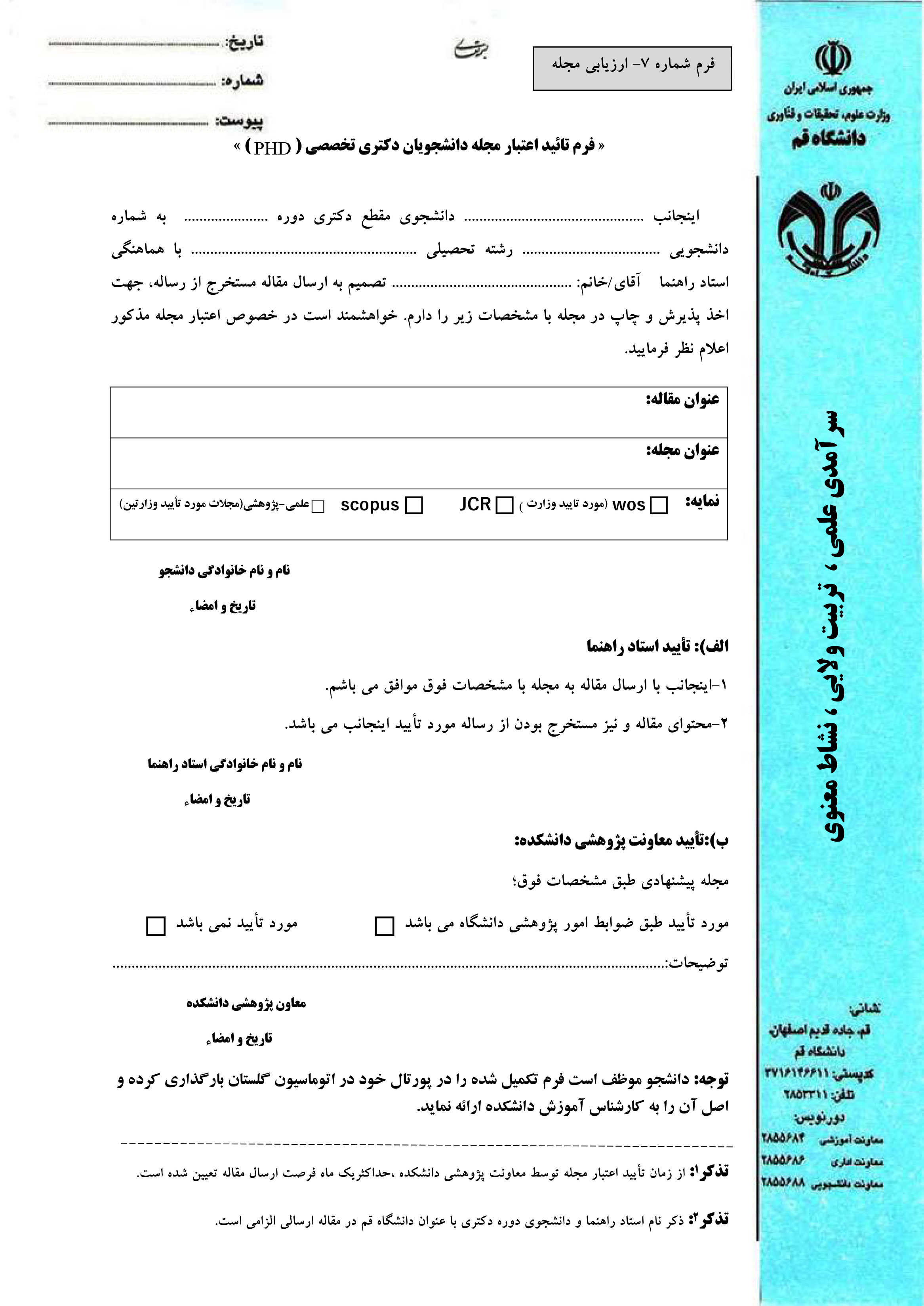 فرم شماره7: ارزیابی و تأیید مجله (مقاله)
